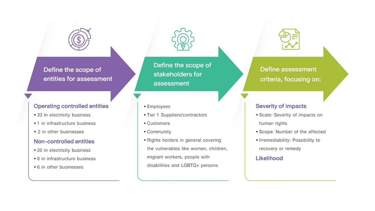 In 2023, RATCH conducted the employee-related human rights impact assessment, to affirm the 2022 risk assessment results. The activity in 2023 entailed the employees of the Company and operational controlled entities as they are considered the most important internal rights-holders. It served as a review of the latest assessment of impacts on employees and the evaluation of the efficiency of current actions and preventive measures.