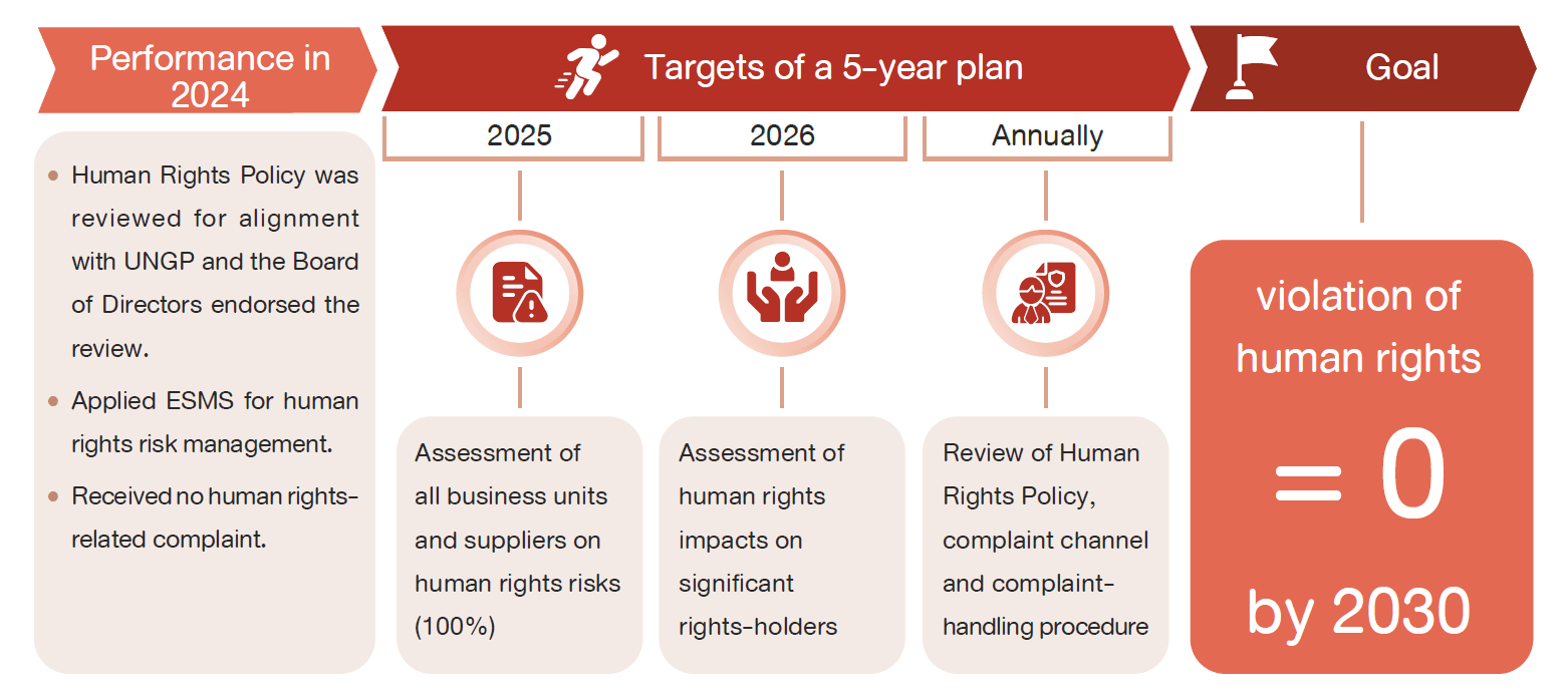 RATCH is committed to continuously conducting human rights risk assessment whilst preparing risk mitigation and prevention measures, monitoring and reporting of performance to ensure effectiveness of its human rights management. The Group also continues to review policy commitments as well as addressing any complaints and providing effective remedy in case of violation, to relevant affected rights holders.