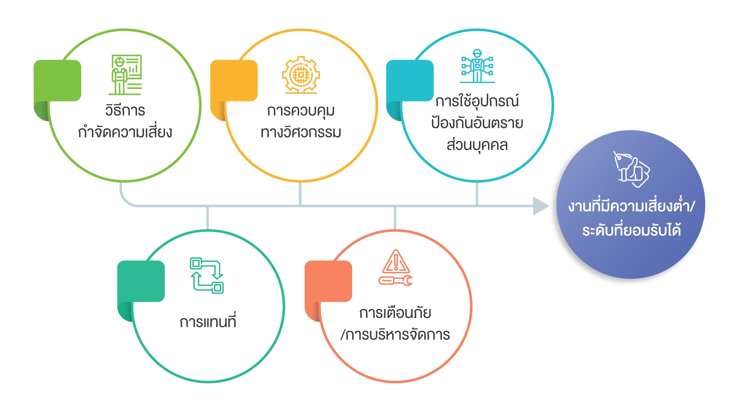 บริษัทฯ ดำเนินการควบคุมความเสี่ยงและป้องกันอันตรายที่อาจเกิดขึ้นในที่ทำงาน ตามระดับความเสี่ยงของงานนั้นๆ ทั้งการกำจัด (Elimination) ปัจจัยเสี่ยงทั้งหมด การใช้วัสดุ กระบวนการ หรือเครื่องมือที่มีความปลอดภัยกว่ามาแทนสิ่งที่มีความเสี่ยง การควบคุมทางวิศวกรรมด้วยการออกแบบหรือปรับปรุงสถานที่ทำงาน เครื่องจักร หรืออุปกรณ์ให้มีความปลอดภัยมากขึ้น การควบคุมทางปฏิบัติการ (Administrative Controls) โดยปรับปรุงกระบวนการทำงานและนโยบายความปลอดภัย และการใช้อุปกรณ์ป้องกันส่วนบุคคล (Personal Protective Equipment - PPE)