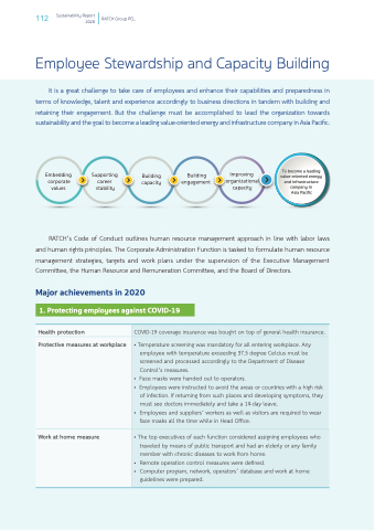 It is a great challenge to take care of employees and enhance their capabilities and preparedness in terms of knowledge, talent and experience accordingly to business directions in tandem with building and retaining their engagement. But the challenge must be accomplished to lead the organization towards sustainability and the goal to become a leading value-oriented energy and infrastructure company in Asia Pacific.