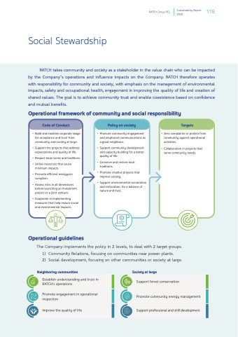 The Company implements the policy in 2 levels, to deal with 2 target groups. 1) Community Relations, focusing on communities near power plants.