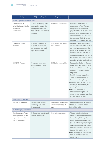 • The contributions to Power Development Fund by Ratchaburi Power Plant, Tri Energy Power Plant, Nava Nakorn Power Plant (and its extension part), Berkprai Cogeneration Power Plant and RATCH Cogeneration Power Plant totaled 134 million baht.