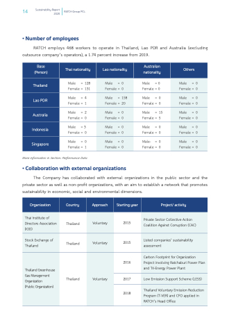 RATCH employs 468 workers to operate in Thailand, Lao PDR and Australia (excluding outsource company’s operators), a 1.74 percent increase from 2019.