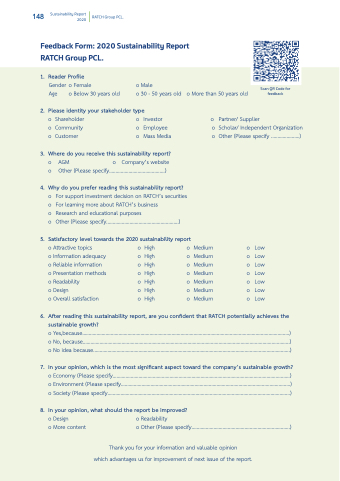 Feedback Form: 2020 Sustainability Report RATCH Group PCL.