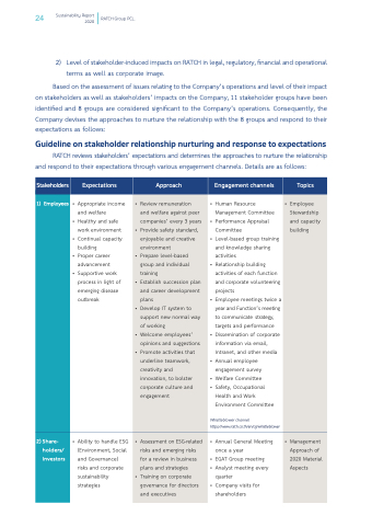 RATCH reviews stakeholders’ expectations and determines the approaches to nurture the relationship and respond to their expectations through various engagement channels. Details are as follows:
