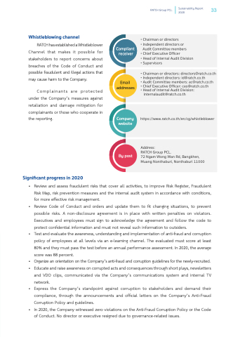 RATCH has established a Whistleblower Channel that makes it possible for stakeholders to report concerns about breaches of the Code of Conduct and possible fraudulent and illegal actions that may cause harm to the Company.