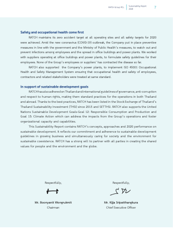 This Sustainability Report contains RATCH’s concepts, approaches and 2020 performance on sustainable development. It reflects our commitment and adherence to sustainable development guidelines in growing business and simultaneously caring for society and the environment for sustainable coexistence. RATCH has a strong will to partner with all parties in creating the shared values for people and the environment and the globe.