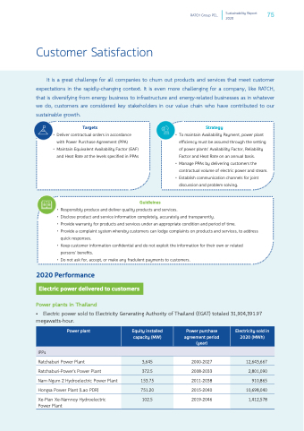• Electric power sold to Electricity Generating Authority of Thailand (EGAT) totaled 31,904,391.97 megawatts-hour.