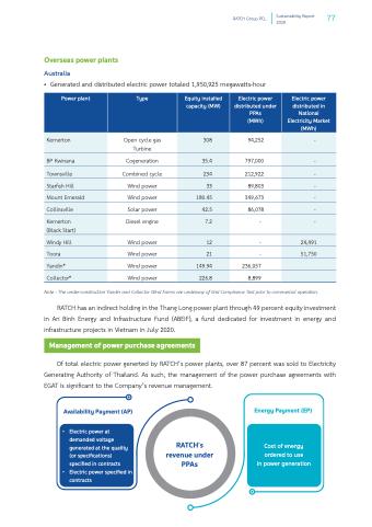 Of total electric power generted by RATCH’s power plants, over 87 percent was sold to Electricity Generating Authority of Thailand. As such, the management of the power purchase agreements with EGAT is significant to the Company’s revenue management.