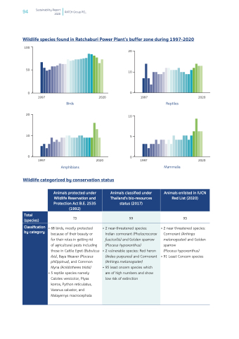 Wildlife species found in Ratchaburi Power Plant’s buffer zone during 1997-2020