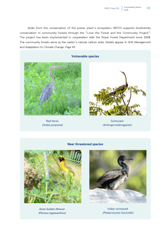 Aside from the conservation of the power plant’s ecosystem, RATCH supports biodiversity conservation in community forests through the “Love the Forest and the Community Project”. The project has been implemented in cooperation with the Royal Forest Department since 2008. The community forests serve as the nation’s natural carbon sinks. Details appear in GHG Management and Adaptation to Climate Change: Page 45
