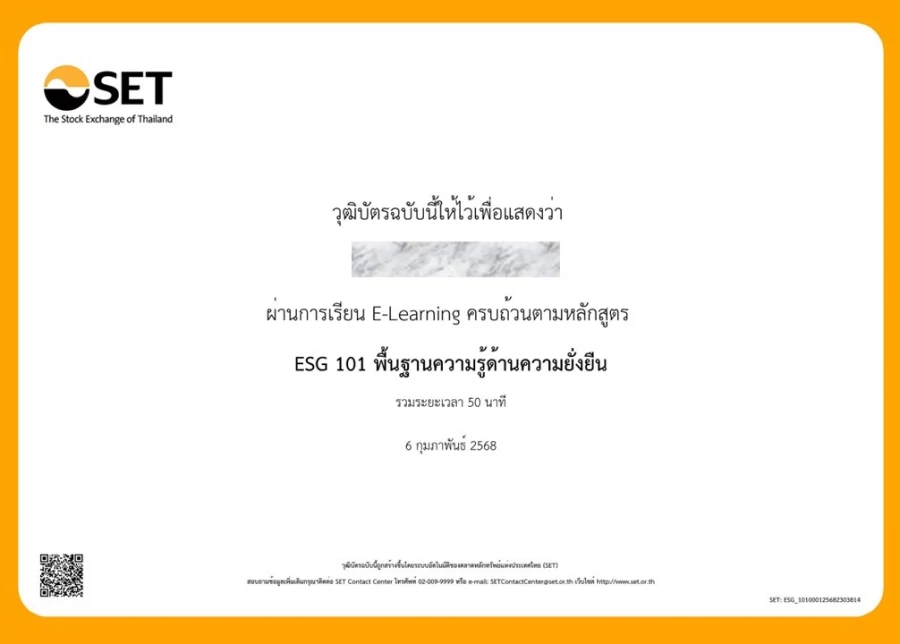 - หลักสูตร ESG 101: พื้นฐานความรู้ด้านความยั่งยืน